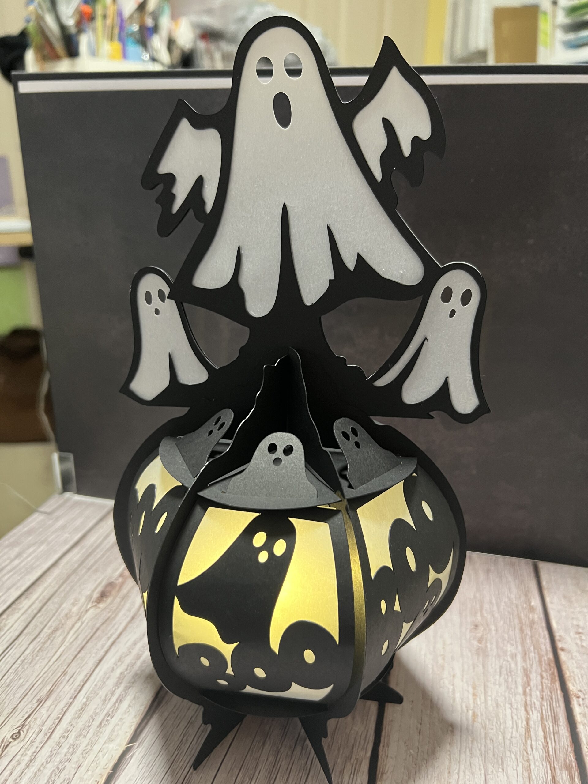 I made some paper lanterns and gave them out to family members this year. I created a spooky ghost and a beautiful witch with a crow.