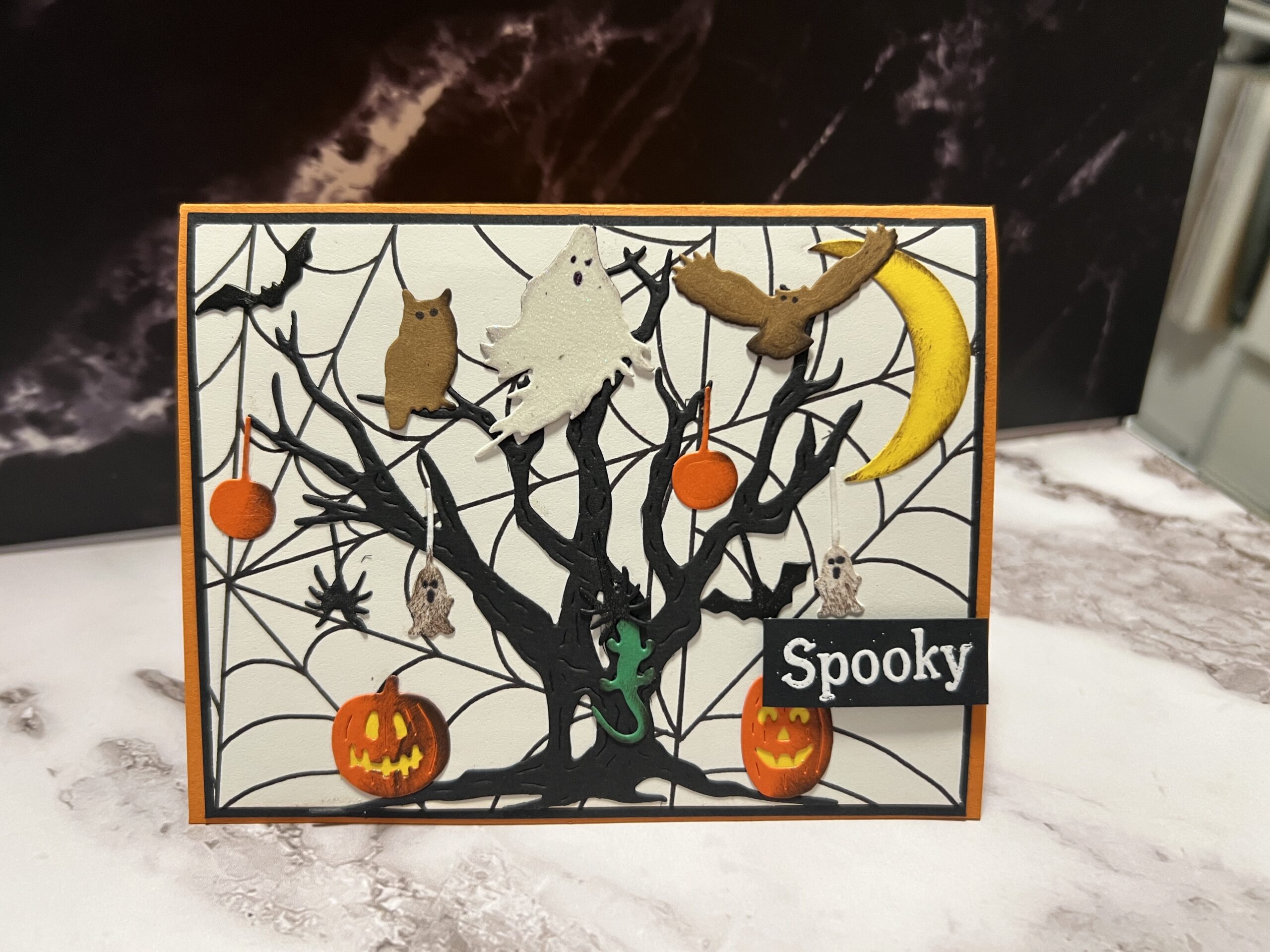 I made this card at one of my card clubs and we were each given the tree and all the little dies to create a