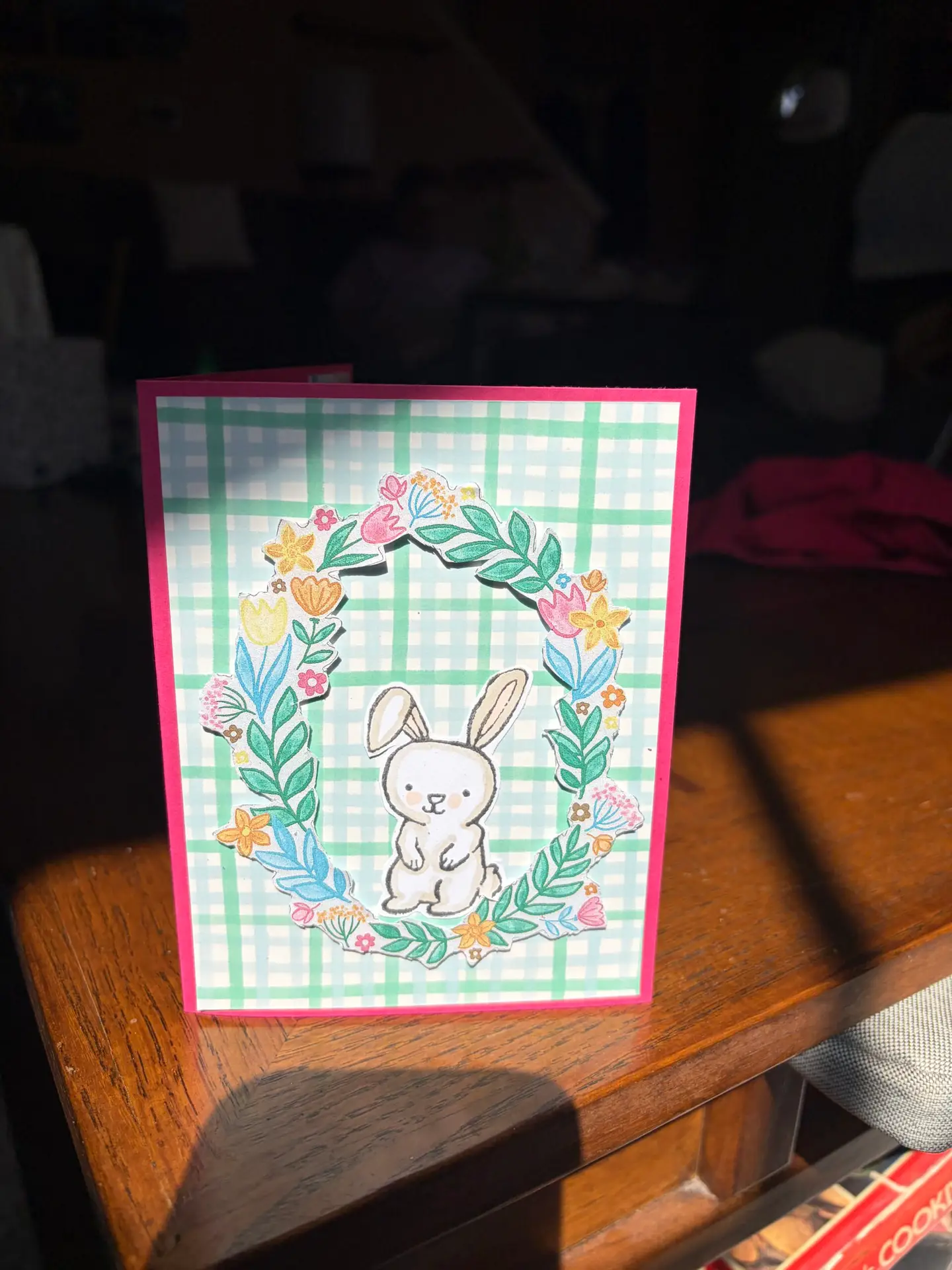 For this card I stamped the bunny, egg and flower. I then used alcohol markers to color each of them. I used a light blue