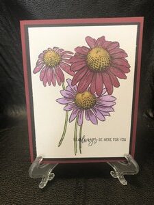 I love cone flowers and as I was stamping this flower I thought I could turn it into a cone flower. Cone flowers are a lot like daisy flowers they just have a pointy inside, whereas; a daisy is full and flat center. I colored these flowers two different ways. For one of them I […]