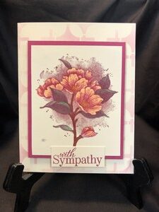 I made this card for one of my card making groups. I thought it was tasteful for a very sad time for someone. I first used a stencil and lightly colored the card base background. I then stamped the flower with a purplish ink before I colored in the flower with yellow marker and the […]