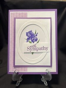 I just love how this card turned out. Sometimes you just don’t know what it will look like until the very end. This would put a smile on anyone’s face. I first die cut three frames and stacked them on each other. For the next step I stamped the iris in purple and green for […]