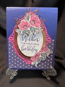 This is another set of stamps and dies from Stampin Up and they turn your cards into a work of art. I first cut out some of the flowers from the designer paper then cut the frames from hot pink and copper card stock for the blue card and pale pink and gold for the […]