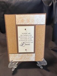 I thought this card would be good for someone who is going through a rough time in their life or even a sympathy card. I tried staying with neutral colors of browns for this card. The card base is dark brown and the strips on the front are 1 inch by 3 and 1 inch […]
