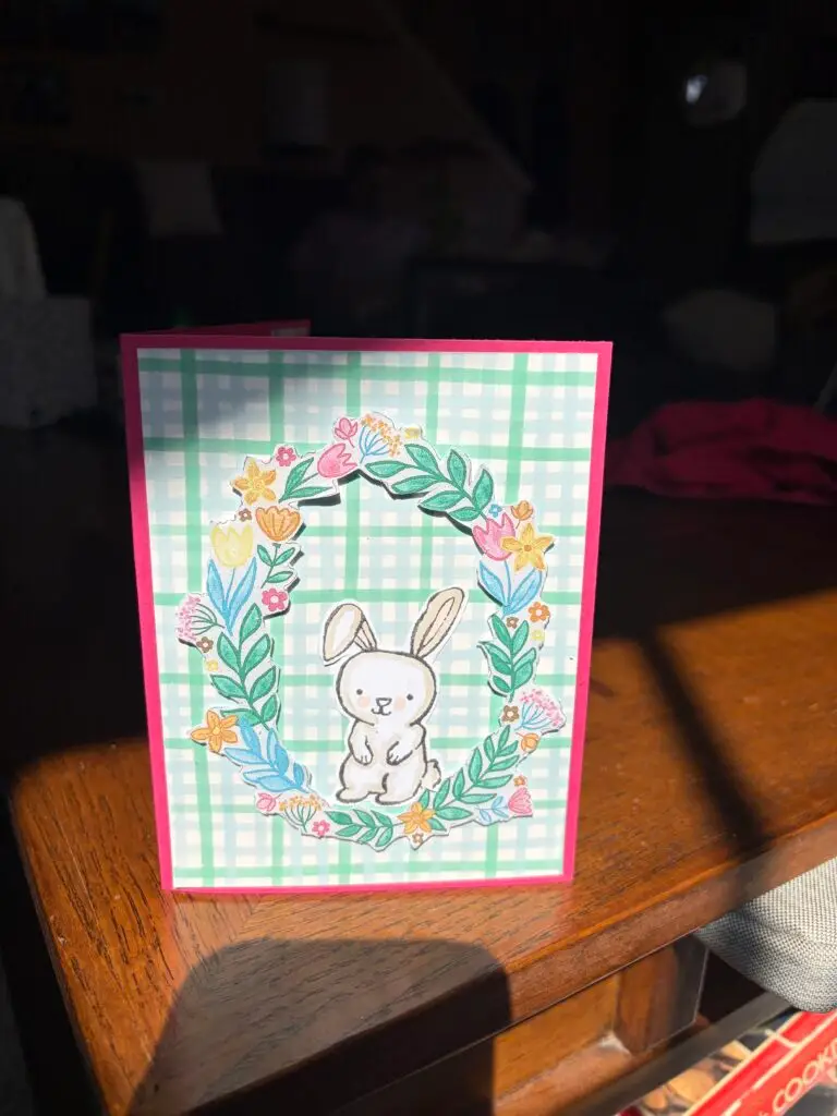 I love making cards that do something. It always amazes the recipient when they open the card. This card has a pop up on the inside. The inside first pops up to show the top square and then you can see the second and third square.