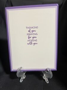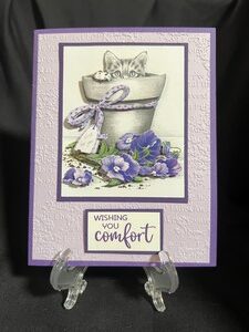 These cards are so fun to put together.  My first one is for someone who may be going through a tough time and it is more of an encouragement. Each piece has a small part of it layered on top of the main picture. I used purples on this card to be a cool and comforting card.
