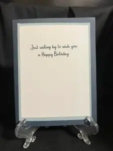 As the weather warms up I start to think about the water. For this card I wanted it to be a serene scene of the boat floating in the water. For the inside I stamped a simple birthday wishes.