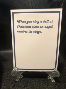 I added some ribbon and attached a small bell to the card and die cut a set of wings. The sentiment on the side is something that I grew up with. We always had bells to ring around our house and I have continued with that tradition.