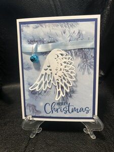 Angel wings, what thought comes to your mind? I made this card for someone who lost a very dear loved one. Although it won’t bring them back you can at least ring the bell and know that an angel will receive their wings at Christmas.