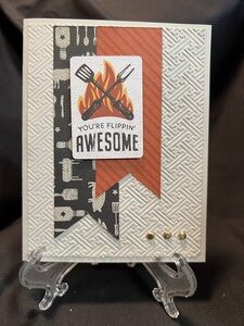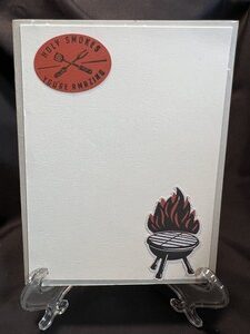For the inside I stamped a circle which says, ” holy smokes you’re amazing” and added a grill at the bottom.
