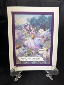 As I was creating this card I thought the paper looked like ballerinas dancing in the warm sun. I only used a few items to create this card. First, is the designer paper from Stampin Up. Then, I used a dark purple to frame out the designer paper and lastly, I made a small sentiment at the bottom.