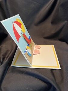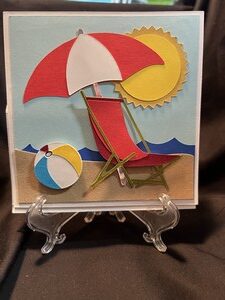 I die cut all the pieces and then layered them on the blue background. For the brown I used actual sandpaper for the sand.