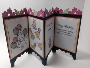 I made this card into a fun little birthday card. Flowers on top and balloons and party hats on the inside.