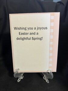 For the inside of the card I added a small trim of checked paper along the right side and stamped the sentiment, “Wishing you a joyous Easter and a delightful Spring.”