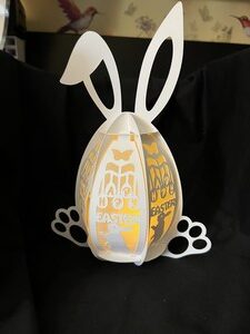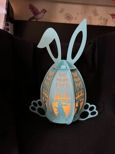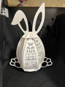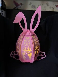 I made these cute bunny lanterns for my card group ladies. I made a white, pink, and blue one I was trying to stay in the pastel group. The first picture is with the lights off and the second one is with the tealight on. I love how they turned out and I know the ladies will enjoy them as well.