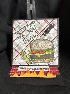 Another great card to give to anyone who loves to grill, I call it a burger easel card. I used pretty much the same colors that I used on the double decker burger card.