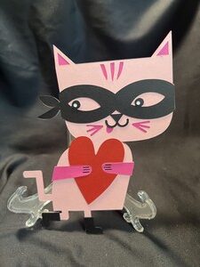I die cut the kitty out and added the mask and heart. For the inside there is a small area to write your message.