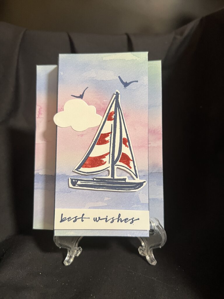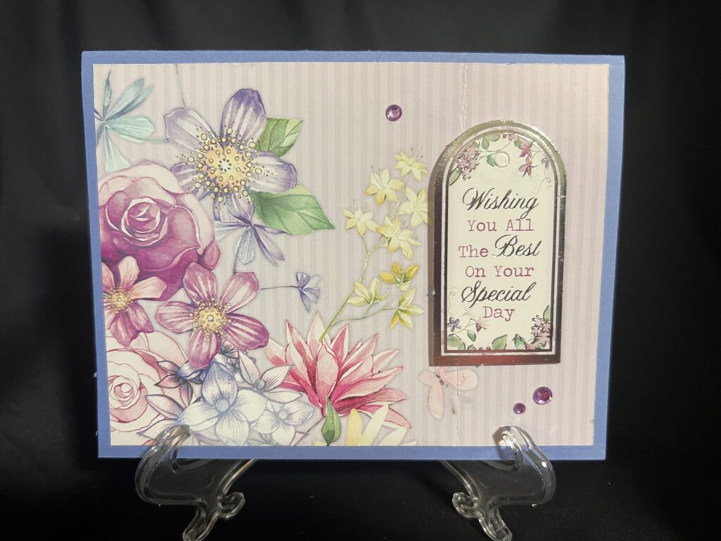 I stamped and colored the flowers and the die cut some of the flowers and leaves for the inside. See that little pink strap at the bottom of the card that is the part that makes the vase pop open. I embossed the inside to add some texture to the background.