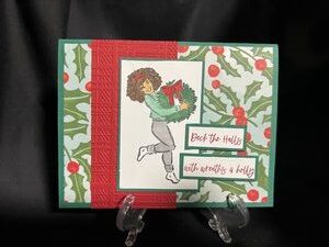 Of course it’s time to start decorating for Christmas. I usually wait until the first of December. This card reminded me of starting to decorate. As you can see the girl has a Christmas wreath that she is probably getting ready to hang.