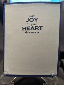Everyone knows gnomes are all the rage right now so I created this card for Christmas. I used different layers of scrapbook paper and some vellum for the background layers. There is a holographic snowflake and then the main design the gnome. The gnome was colored using alcohol markers and then a small strip with the sentiment Merry Christmas and a Happy New Year. For the inside I added another sentiment of May joy fill your heart this season. The card is backed with navy blue card stock.