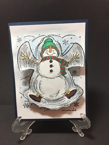 I water colored the background a light blue and colored the snowman using copic markers.