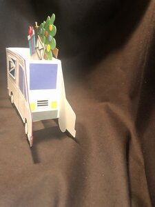 This card is called a box card.  It folds up flat into an A2 envelope, but since I was adding a couple extra gifts inside I made a bigger size envelope. The first photo is the side of the card, the second is a view of the front and the third is a view of the back.  I also have a view of the card and envelope together. On the other side I left it blank so you can add your own message.