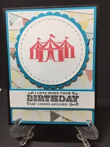 The stamp set that I used is called, “Carousel Birthday and the paper I used came from Stampin Up’s  Cupcakes and Carousels.