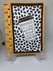 I made my special braid on this card again. I just love how it adds a little something to the card. I used coffee bean paper for the background and colored the cup with brown ink, then added glossy accents on the lid to make it shine. Who wouldn’t love this card with a coffee gift card enclosed on the inside.