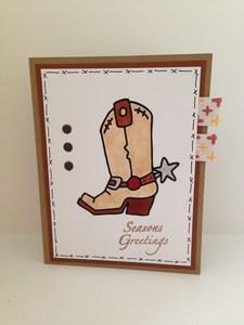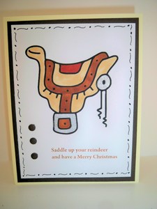 Ok this is the start of Christmas in July, thanks card club for the idea.  Here are three cards I made for the card club I am in:  The saddle, the horse and the boot.
