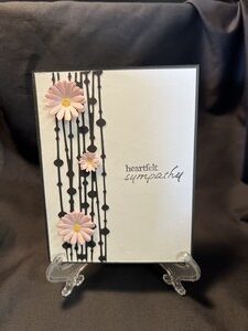 I die cut the daisies and stacked them on top of each other, and then die cut the black dot and line and stamped a sentiment of heartfelt sympathy.