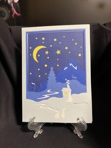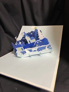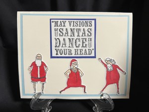 I made these cards for some of my relatives. I knew my husbands aunt would get a kick out of the dancing Santa’s and my daughter would love the snow scene. Both of these cards have a 3D Popup on the inside which makes them even more special.