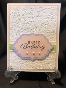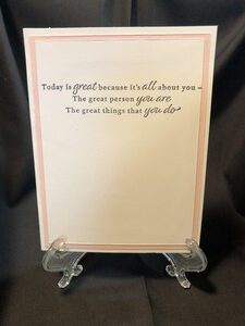 I die cut a label and stamped Happy Birthday, added a few pearls and a couple strips of card stock and called it done. For the inside I added a sentiment which lets the recipient know the day is all about them.