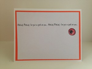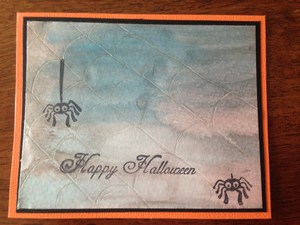 Well Halloween is less then 24 hours away and I have two more cards for you to enjoy.  First one has the witch theme going for it with the broom and hat and magic book.  The second one is a spider web with spiders, I used watercolor paper and painted the web on.
