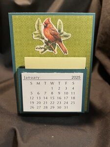 I made this easel calendar for some friends and family this year. It was quite easy to make. It pretty much is some card stock folded over to make a stand. I made some cardinal stickers with my cricut and had that as the main focus for the year.