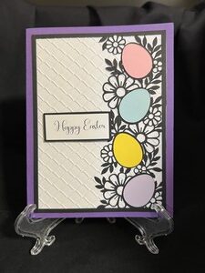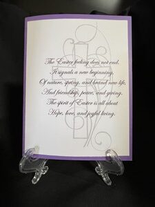 I had fun creating this card. I wanted it to be kinda Spring feeling by the colors I chose. I liked this Easter saying so I incorporated it into the card and added another white page to write a personal message.