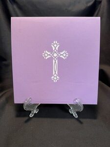 Happy Easter everyone!  For my final Easter card I made this pop up cross card. the colors I used for the card stock are white blue  purple and green. The front has a die cut cross on it but as you open the card a pop up cross appears. There are white lilies at the bottom of the cross.  The middle picture shows the top view and the last photo shows how it looks when fully opened.
