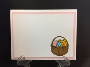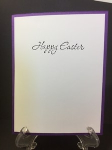 My next card I used a Stampin Up stamp set called, “Easter message.”  I stamped the words on vellum and then stamped the cross on watercolor paper and colored in the cross.  Stamped a simple message of Happy Easter on the inside.