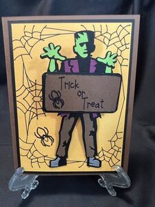 I die cut most of the character out and used a wobble so he would move like he was walking, then I used a black pen to create the spider web and spider on the front.
