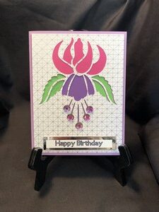 The fuchsia is in purple and pink and I added some rhinestones at the bottom of the flower. The sentiment is backed using silver foil paper. I used a simple sentiment on the inside, “Hope you have the best birthday.”