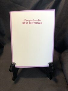 The fuchsia is in purple and pink and I added some rhinestones at the bottom of the flower. The sentiment is backed using silver foil paper. I used a simple sentiment on the inside, “Hope you have the best birthday.”