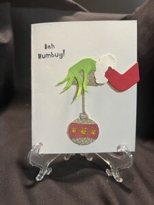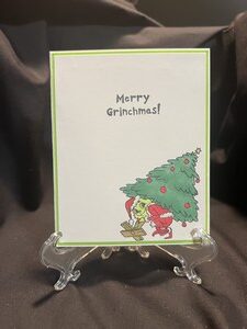 I made this Grinch lantern and card for my sister. Her theme for Christmas on her Christmas card was the Grinch they even used their dog like the Grinch.