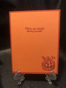 Here’s a cute Halloween card to give to a friend. I made this using supplies from the Paper Pumpkin September 2020 kit. Instead of making party crackers that you would fill with candy and toys, I used those supplies to create this card.