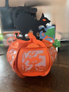 Here are just a few of the Halloween lanterns I have created so far. I am showing them with the lights on the inside on and without the lights. They are all made using #110 paper for stability and glue. Some of them have just a tealight inside and others have the fairy lights.