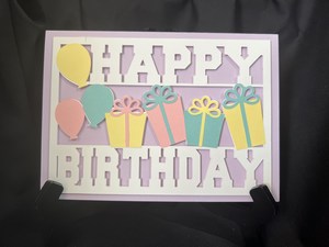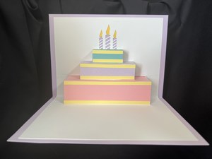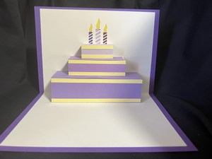 I made my son’s card out of purple and yellow card stock and my sister’s out of pastel colors of pink, yellow, purple and light green. I have to say the hardest part of these cards were trying to get the fold on the inside lined up just right, but I love how both of them turned out.