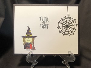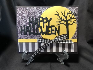 I made this card with a big full yellow moon and a scary tree with a few skeletons floating in the background to give the feel of a cemetary. For the inside I added a witch with a spider web hanging down.