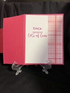 For the inside I continued with the plaid paper and added a white card stock and stamped XOXO sending lots of love. Great card to give to someone you love.