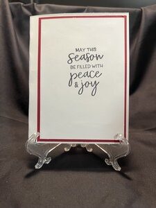 For this card I die cut all of the pieces and added a wreath to the front and then stamped, “May the season be filled with peace and joy.” We really need peace and joy this year with all of the wars going on.