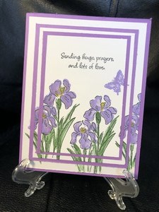 I used different shapes of purple for this card. The sentiment says,”Sending hugs and prayers and lots of love.”  This card could even be used as a sympathy card.