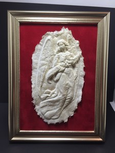 Gold angelFor my last one, it is not a card but is made with paper.  I love angels just about as much as I love hearts.  This angel is made from a mold and paper then sprayed with gold glitter paint.  It is mounted on red velvet board with a gold frame.