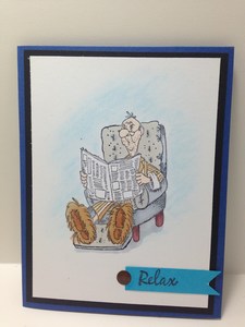 This is the stamp I purchased from Art Impression I thought I will get a lot of use for the men in my life: for starters my husband for Father’s Day. He already owns the recliner so why not add the PJs and paper also.